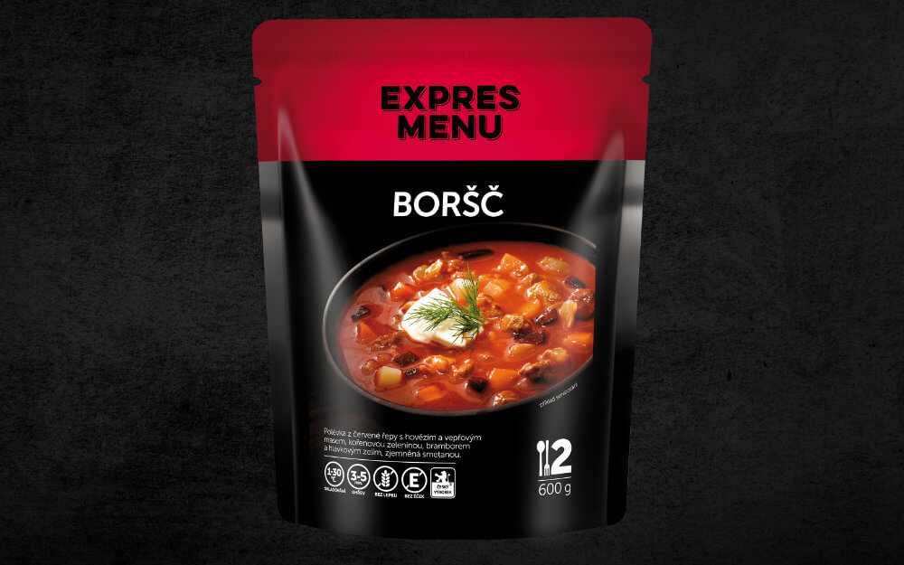 Vychutnejte si tradiční chuť boršče, polévky z červené řepy, obohacenou hovězím a vepřovým masem. Tento pokrm je doplněn kořenovou zeleninou, bramborem a hlávkovým zelím a jemně zjemněný smetanou. Ideální jako rychlé a výživné jídlo, stačí jen ohřát a můžete rovnou servírovat. Perfektní volba pro milovníky kvalitních domácích polévek.