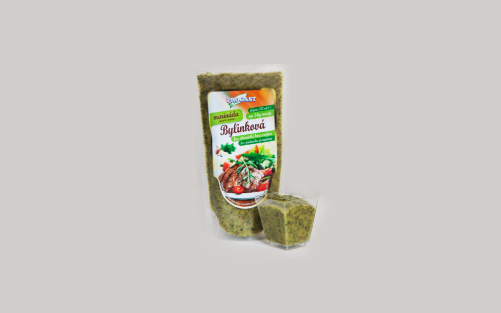 Bylinková marináda je aromatická a bohatá na chuť. Začíná s vůní česneku a pokračuje do světa bylinek: tymián, libeček, majoránka, oregano a bazalka tvoří harmonickou kombinaci. Kmín přidává zemitý nádech a kari s kurkumou dokonale zakončují tuto vytříbenou marinádu, jak chuťově, tak i barevně.