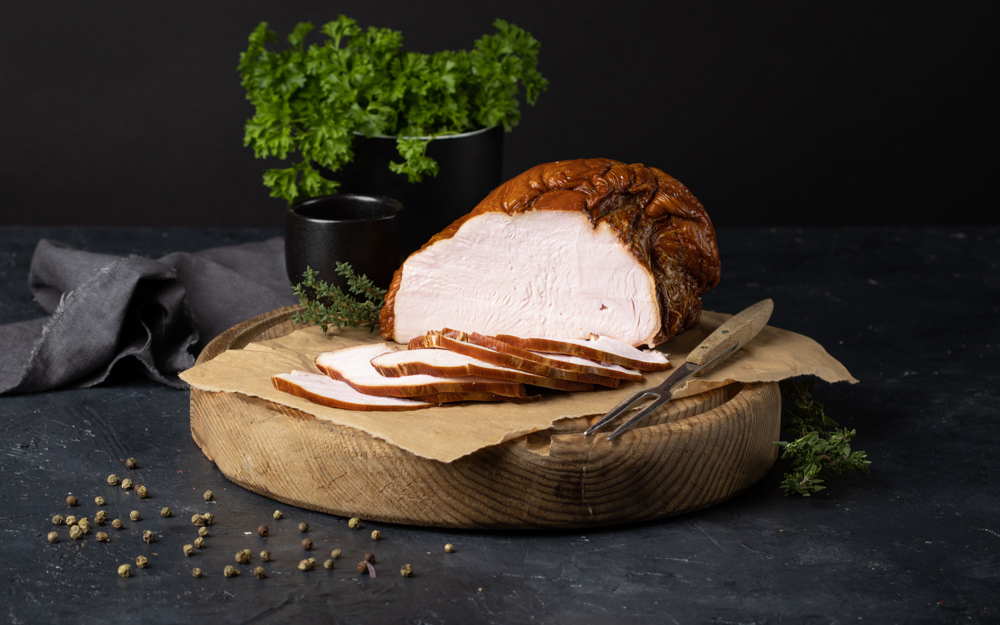 Uzené prso v udírně Prominent CZ v Brništi. Skvělý produkt pro přípravu chlebíčků nebo obložených talířů místo klasické šunky. Krůtí maso pochází z České Republiky z farmy Brniště popřípadě z farmy na jižní Moravě.